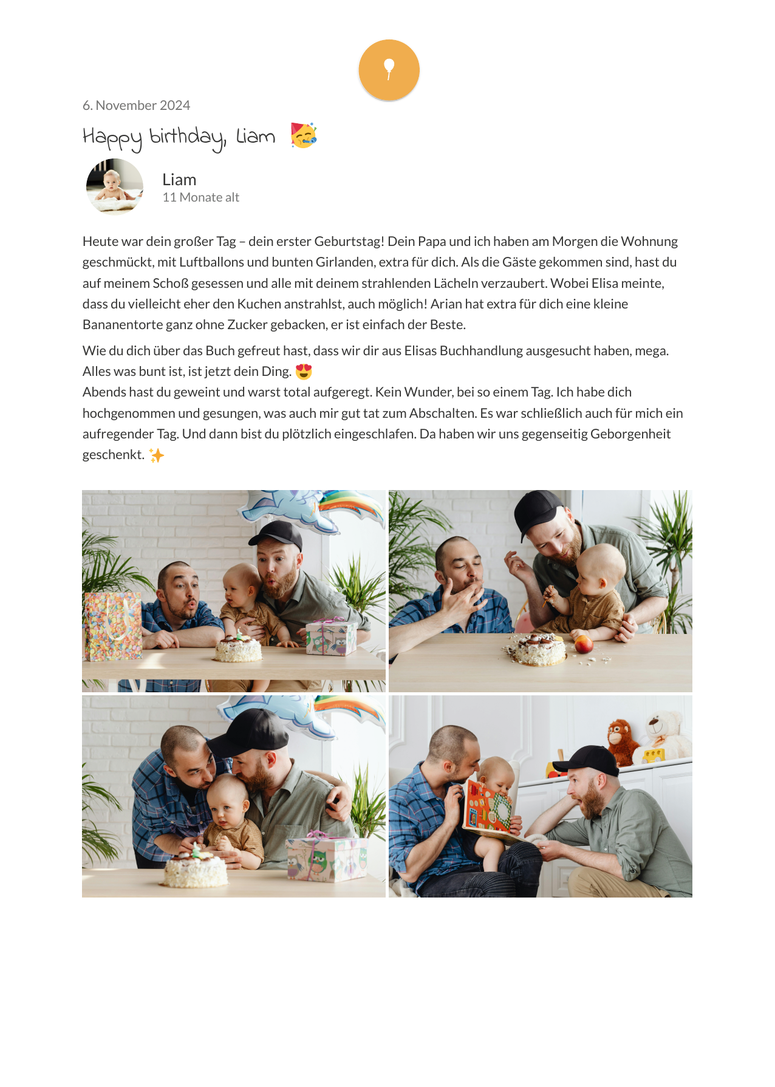 - Ordne deinem Tagebucheintrag einer Person, einem Event oder deinem Kind zu. Du kannst sogar das Alter angeben. Übernimm diese "Avatare" ins eBook. So sieht es besonders persönlich aus.