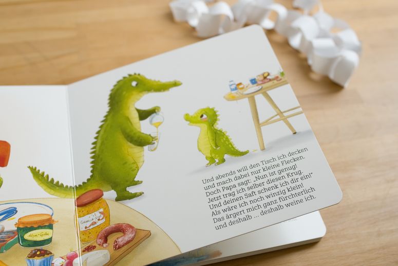 Ein Pappbilderbuch mit bunten Seiten spricht natürlich besonders die Kleinen an, aber der Inhalt eignet sich auch ganz toll für Gespräche mit Schulkindern. Zusammen könnt ihr überlegen, ob ihr selbst ähnliche Erfahrungen gemacht oder beobachtet haben. Irgendein Juli Krokodil kennt eigentlich jeder ... :)